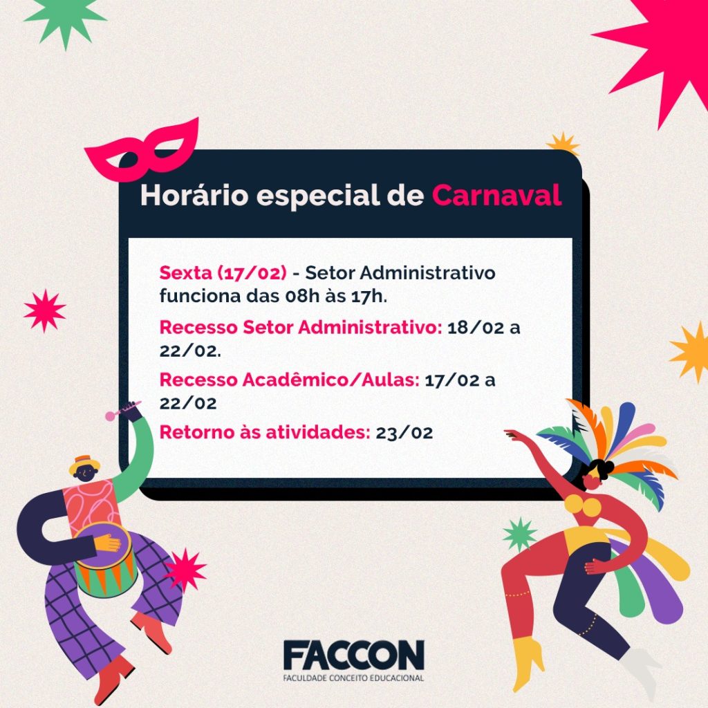 Chegou a semana de foliar, por isso, vamos ficar atentos aos nossos horários especiais neste período carnavalesco. Bom Carnaval para todos!